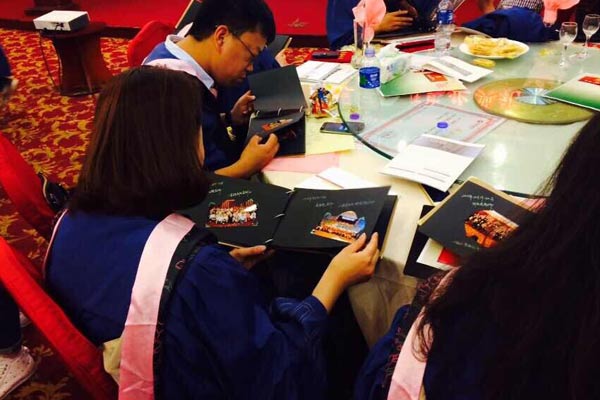 畢業典禮中,優秀學員代表紛紛上臺領獎,并與大企北京影響力的高管們留下珍貴合影。畢業典禮結束時,沈陽分公司為學員們送出了用心準備的DIY手工相冊。相冊中記錄了這一年來39班課程以及活動的點點滴滴,寫下了班主任對39班的真心寄語,濃濃的同學之情盡現紙上。