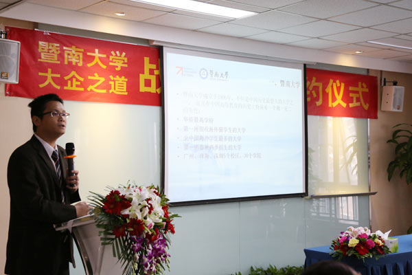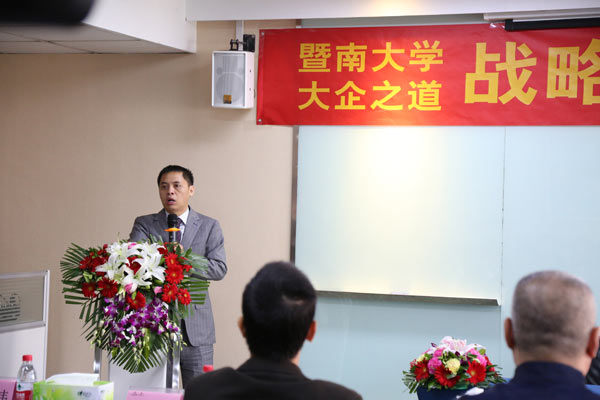 暨南大學管理學院凌主任代表學校和暨南大學黨政辦宣讀了學校正式批復雙方合作的文件,對雙方未來的合作充滿信心。凌主任表示暨南大學“東漸于海,西被于流沙,朔南暨,聲教訖于四海”,其體制優勢與大企培訓的市場化優勢可以互補,這也是學校非常想突破的。管理學是暨南大學的拳頭學科,學校也希望EMBA教育能夠輻射到更多地區。在學校領導的大力支持下,一定會合作的更順利。