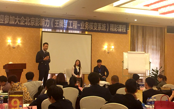 4月23-25日,大企·北京影響力總裁劉永忠先生、全國營銷總經理王雪冰先生攜多名公司資深顧問親臨沈陽碧桂園瑪麗蒂姆酒店,為沈陽的企業團隊帶來了精彩的王牌軍課程。